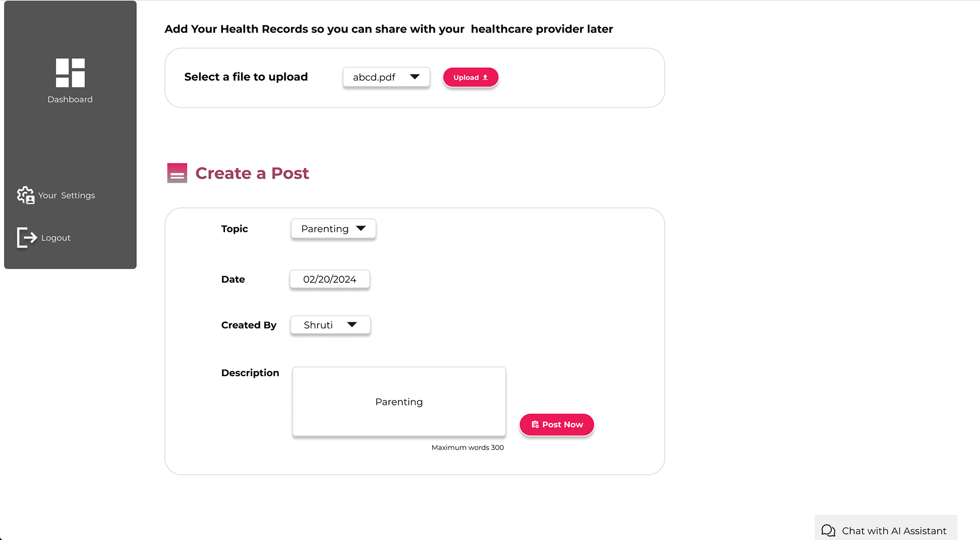 Maternal Block - An AI-based and blockchain platform for all mothers and woman trying to conceive who faces issues of not reaching out to healthcare experts for the fear of being judged. Another problem users face is lack of emotional support from family members and lack of community.